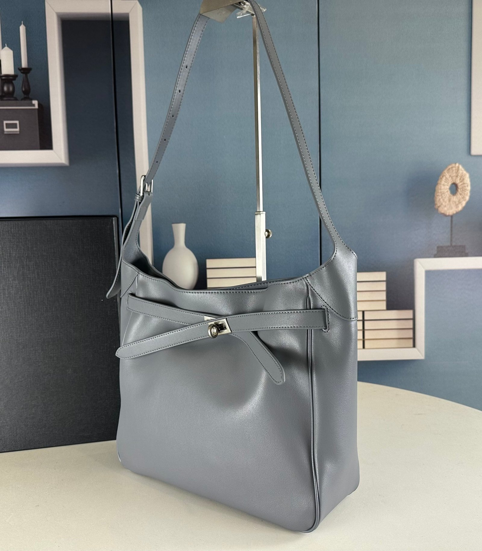 New Balenciag Winter 24 series Re-see handbag, single-shoulder bucket bag, made of top-layer cowhide with visible texture. Adopting original hardware, it is minimalist, high-end and atmospheric. A handbag transformed from a motorcycle glove, hanging with fashion recreated from a key ring buckle. It gives off a lazy and御姐风 look when worn. Size: 30x25x10.