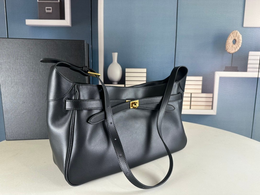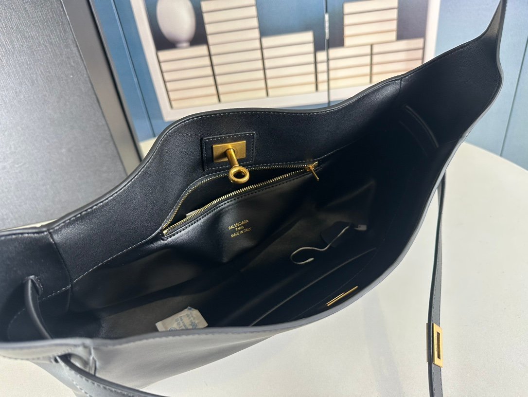 New Balenciag Winter 24 series Re-see handbag, single-shoulder bucket bag, made of top-layer cowhide with visible texture. It uses original hardware and is minimalist, high-end and atmospheric. A handbag transformed from a motorcycle glove. Hanging on it is the fashion recreated with a key ring buckle. It gives off a lazy and御姐风 (domineering female style) look when worn. Size: 37x21x10.