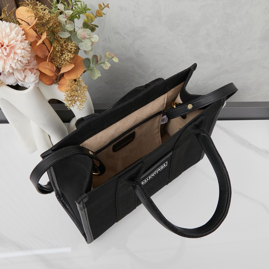 This bag is designed with organic cotton canvas. It is structured and has an internal pocket. With large capacity and extremely light weight! The simple and elegant design can be matched in any occasion!👉 Fashionistas can quickly get🧚♀️ Balenciaga #Balenciaga # #luxury bag#, small size, dimensions 27x22x10.