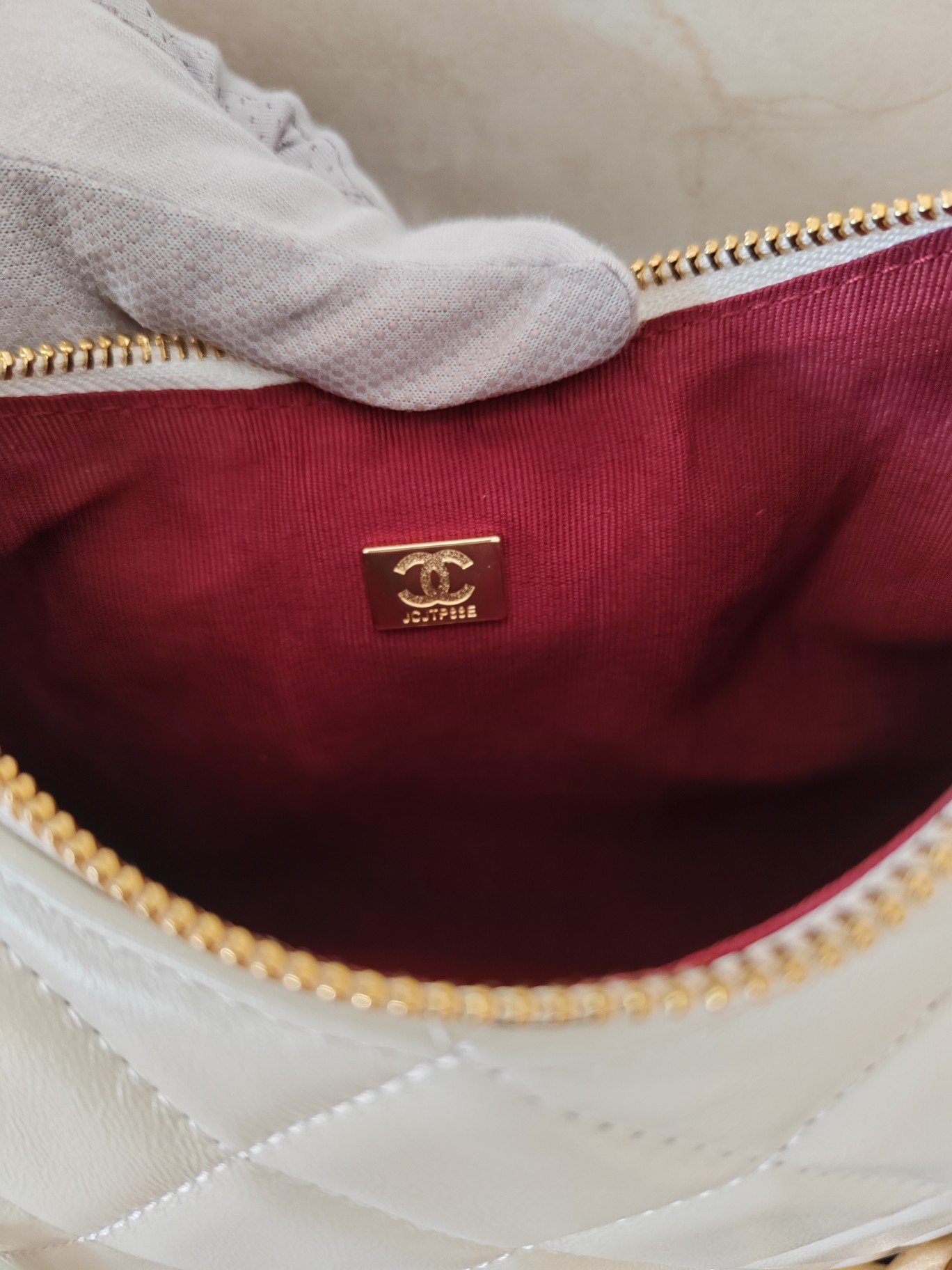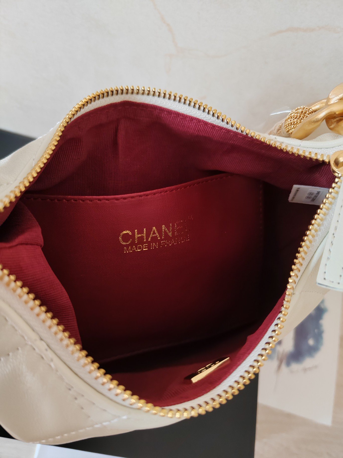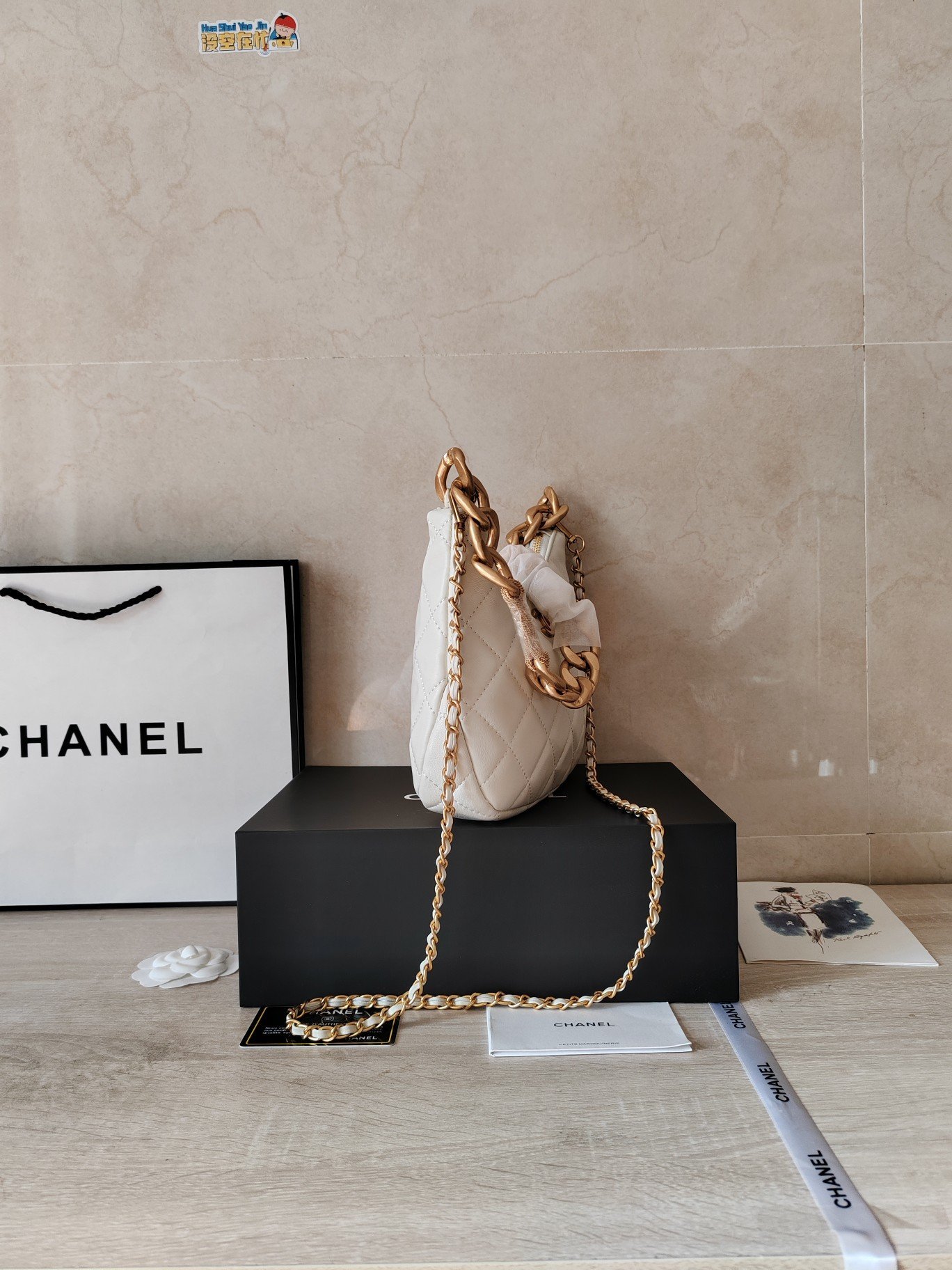 Chanel 23A new haute couture series hobo underarm bag with metal shoulder strap. This chain is really extremely beautiful. It has a strong sense of craftsmanship. It looks very cool and elegant when worn. It’s very atmospheric and likable.