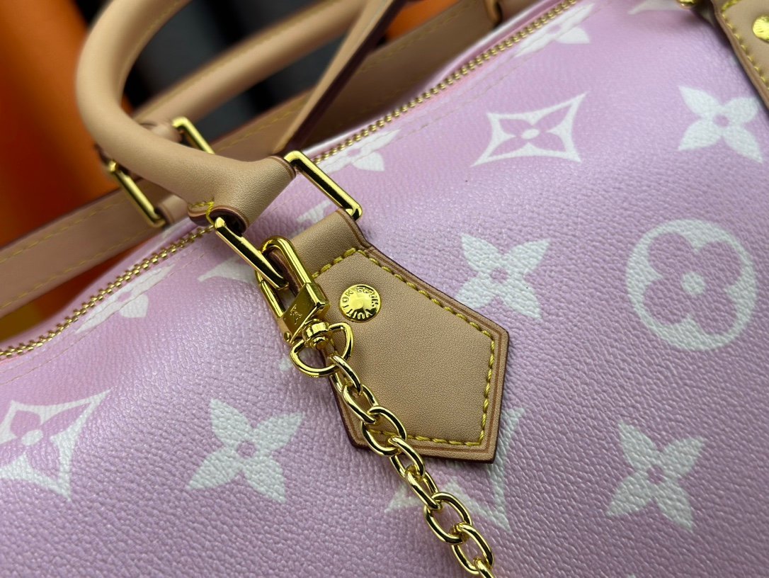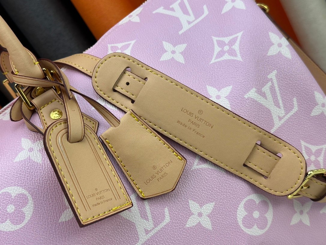 M46964 m24422 m41416 m24420 m11565 Speedy P9 Bandouliére 50 monogram leather handbag is wrapped in soft grained cowhide leather with lambskin lining. The silk-screened monogram pattern presents a blurred look of canvas printing, revealing the new season’s ingenuity of creative director Pharrll Williams. Size: 50x29x23cm.