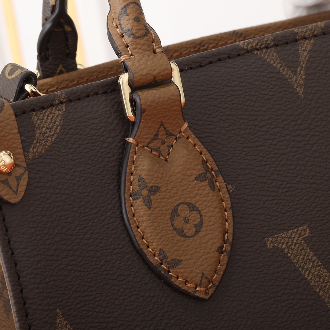 Upgrade the original M46373 M45039 M45659. This OnTheGo small handbag is made of a combination of Monogram and Monogram Reverse canvas, decorated with Monogram Giant patterns. The Toron handle and jacquard woven shoulder strap with brand inscription create a visual contrast. The detachable coin purse is suitable for storing change or small delicate items. With both fashionable charm and diverse functions, it is an excellent daily companion. Size: 25 x 19 x 11.5 cm.