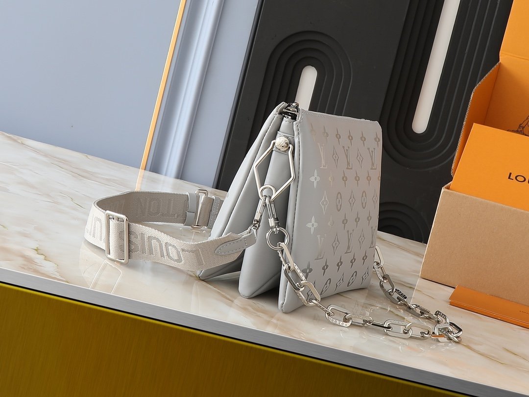 The upgraded original M20369, M22398, M21353, M21209, M57790 black, M57792 bright red, M57793 white, M57936 green, M57913 silver, M58699 light blue, M59278 gold, M57791 khaki, M59276 rose pink, M59275 dark red, M59277 caramel Coussin mini handbag shone brightly at the Spring/Summer 2021 fashion show. The Monogram embossed fluffy sheepskin creates a pillow configuration, injecting avant-garde style into the simple design. It can be carried crossbody with a shoulder strap or transformed into a chain baguette bag, or carried under the armpit. Size: 26 x 20 x 12 cm.
