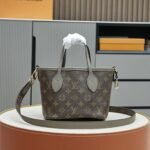The double-sided shopping bag collection Neverfull Bandoulière Inside Out BB handbag, the iconic Neverfull handbag is reversible. The Bandoulière Inside Out BB edition is made from iconic Monogram canvas and has a grained leather on the back. It comes with a removable zippered bag that can be used alone or attached as an external pocket. Sparkling gold hardware adds that final touch. It also features removable straps that allow for crossbody. Dimensions: 24 x 14 x 9 cm