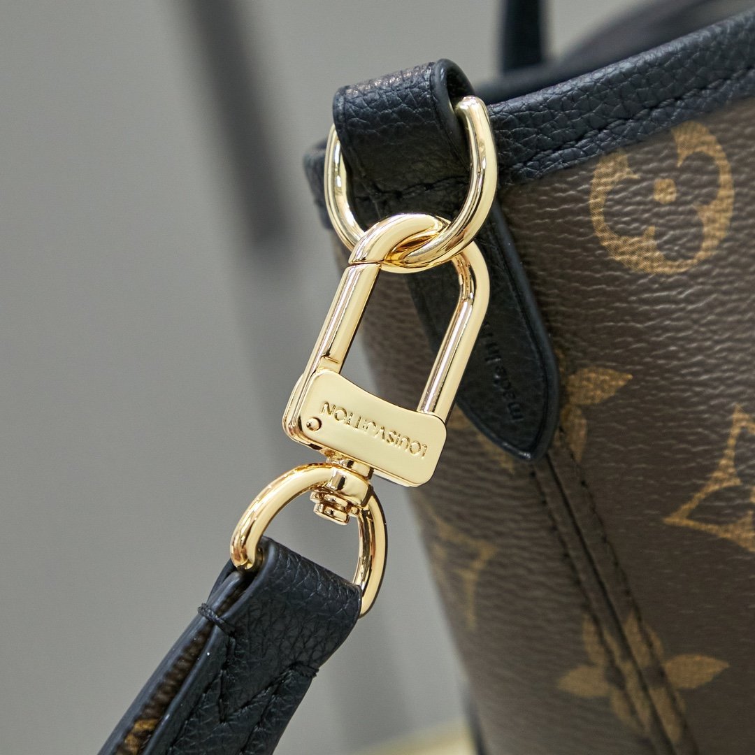 M12099.M12109.M12106.The double-sided shopping bag collection Neverfull Bandoulière Inside Out BB handbag, the iconic Neverfull handbag is reversible. The Bandoulière Inside Out BB edition is made from iconic Monogram canvas and has a grained leather on the back. It comes with a removable zippered bag that can be used alone or attached as an external pocket. Sparkling gold hardware adds that final touch. It also features removable straps that allow for crossbody. Dimensions: 24 x 14 x 9 cm