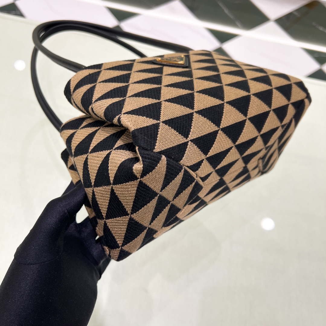Prada 1BA368 From The Runway Small embroidered fabric Prada Symbole bag Black and Beige on sale now.