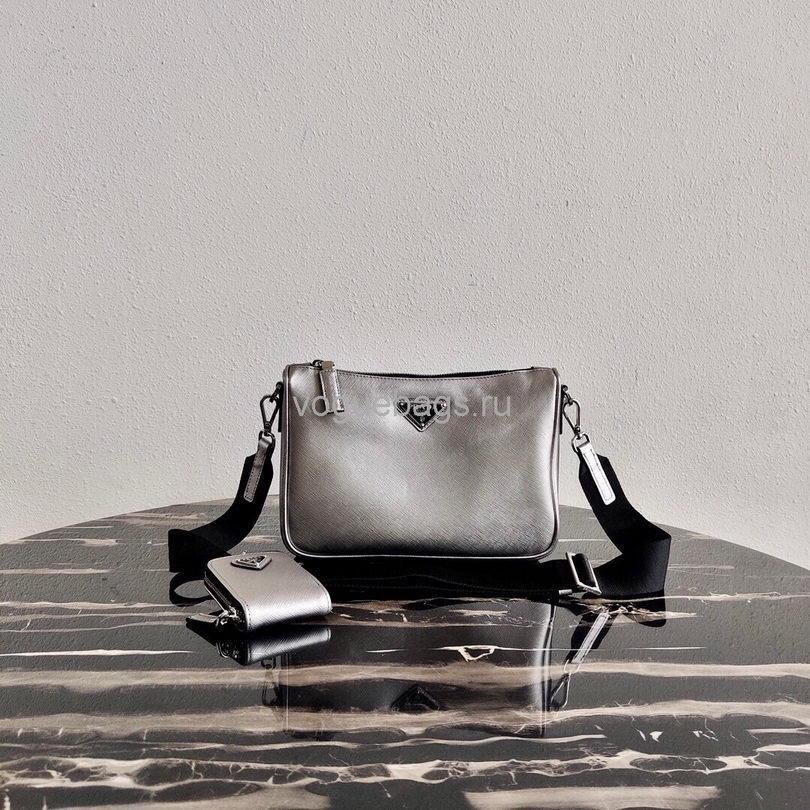 Prada 2VH113 Saffiano Leather Shoulder Bag in Sliver Grey