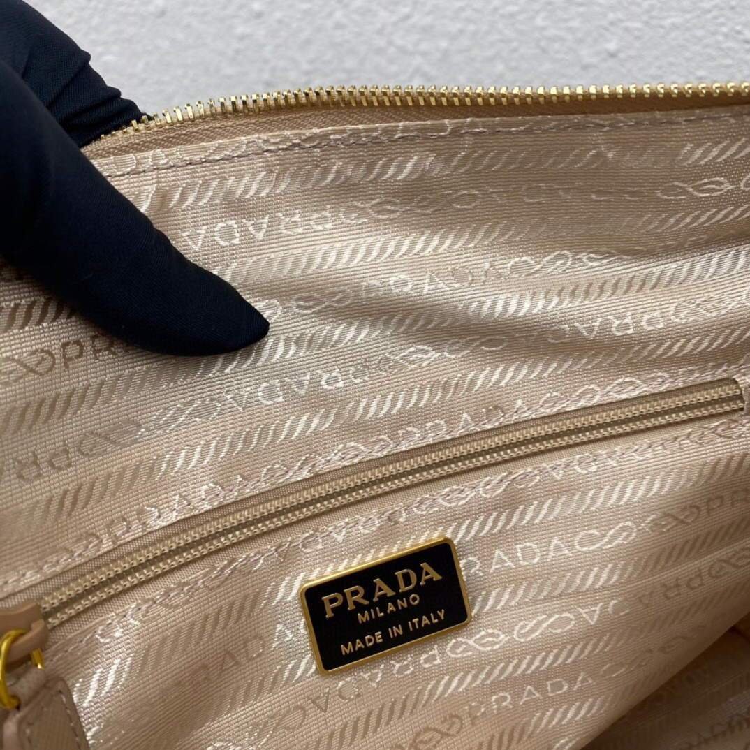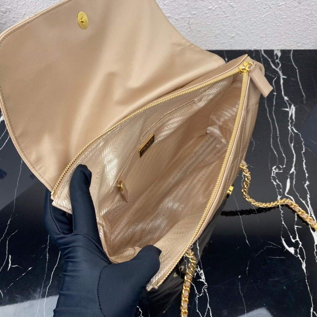 Prada Nylon Vintage Chain Stray Bag 1BD630 Apricot on sale now.