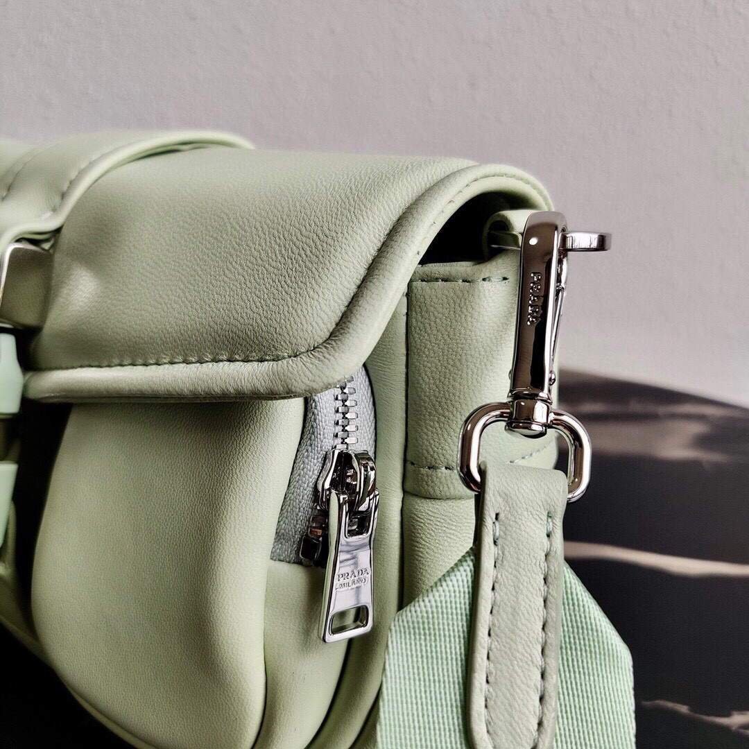 Replica Prada Pocket Nylon and Brushed Leather Bag 1BD295 Green