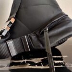 Sleek. minimalist lines are the choice for the new men’s bags for Fall Winter 2021. Defined by its hybrid design. halfway between a backpack and shoulder bag. this accessory has one adjustable woven nylon shoulder strap with side-release buckle and is decorated with the iconic enameled metal triangle logo. The silhouette is made of innovative Re-Nylon. a regenerated yarn produced from recycled plastic trash collected in the ocean.