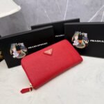 PRADA, 👏👏 classic small single zipper wallet 💼 classic, simple and fashionable, Italy’s top original single cross pattern cowhide texture is excellent, imported threaded lining, white steel metal hardware accessories! Exquisite wiring uniform and neat, exquisite workmanship, size: 19x10x2.5, color: Epoxy triangle standard plum red. Big red. Blue. Black. Pink, number: ML201